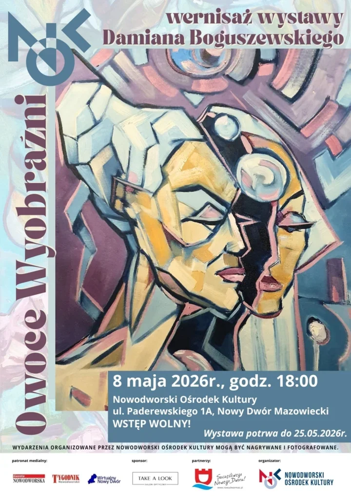 Na wystawę warto zajrzeć nie tylko w dniu otwarcia. Ekspozycję „Owoce Wyobraźni” będzie można oglądać do 25.05.2026 w Galerii Łącznik Nowodworskiego Ośrodka Kultury. Najprościej zapamiętać jedno: 8.05.2026, godz. 18:00, Nowodworski Ośrodek Kultury, ul. Paderewskiego 1A, Nowy Dwór Mazowiecki, wstęp wolny.