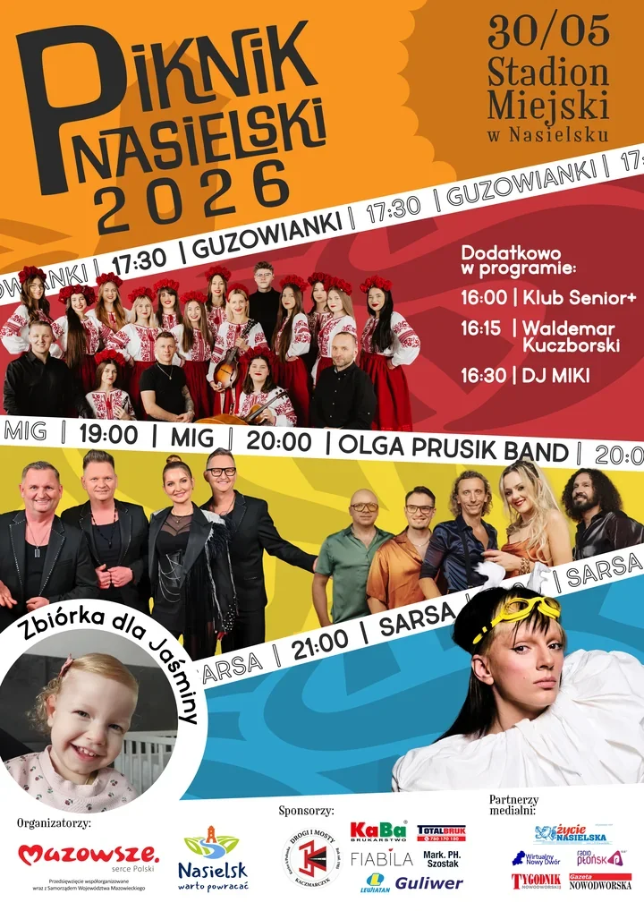 Podczas spotkania prowadzona będzie również zbiórka dla Jaśminy. To właśnie ten element nadaje imprezie dodatkowy wymiar – obok rozrywki pojawia się konkretna pomoc i sygnał, że festyn może być czymś więcej niż tylko letnim koncertem. Przedsięwzięcie współorganizuje Samorząd Województwa Mazowieckiego.